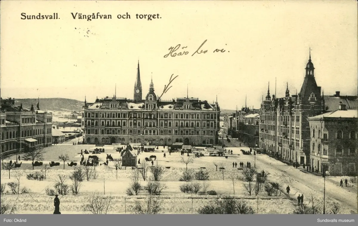 Titel: Vykort över Stora torget och Vängåvan i Sundsvall.