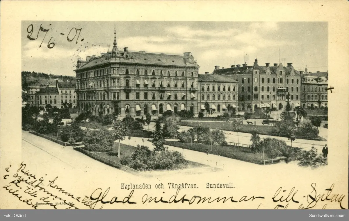 Vykort över Esplanaden och Centralhotellet i Sundsvall.