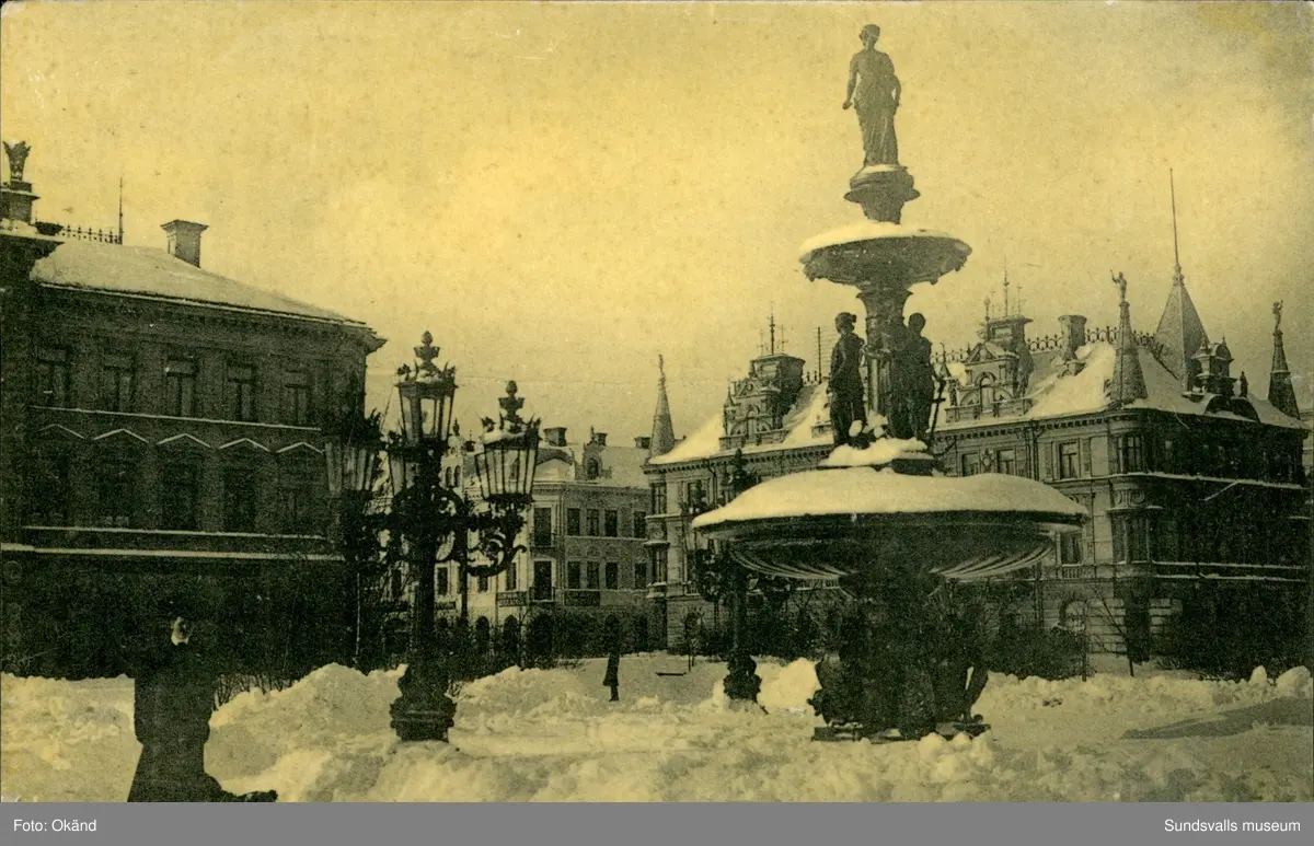 Vykort med vintermotiv Vängåvan och Hoppets här i Sundsvall.