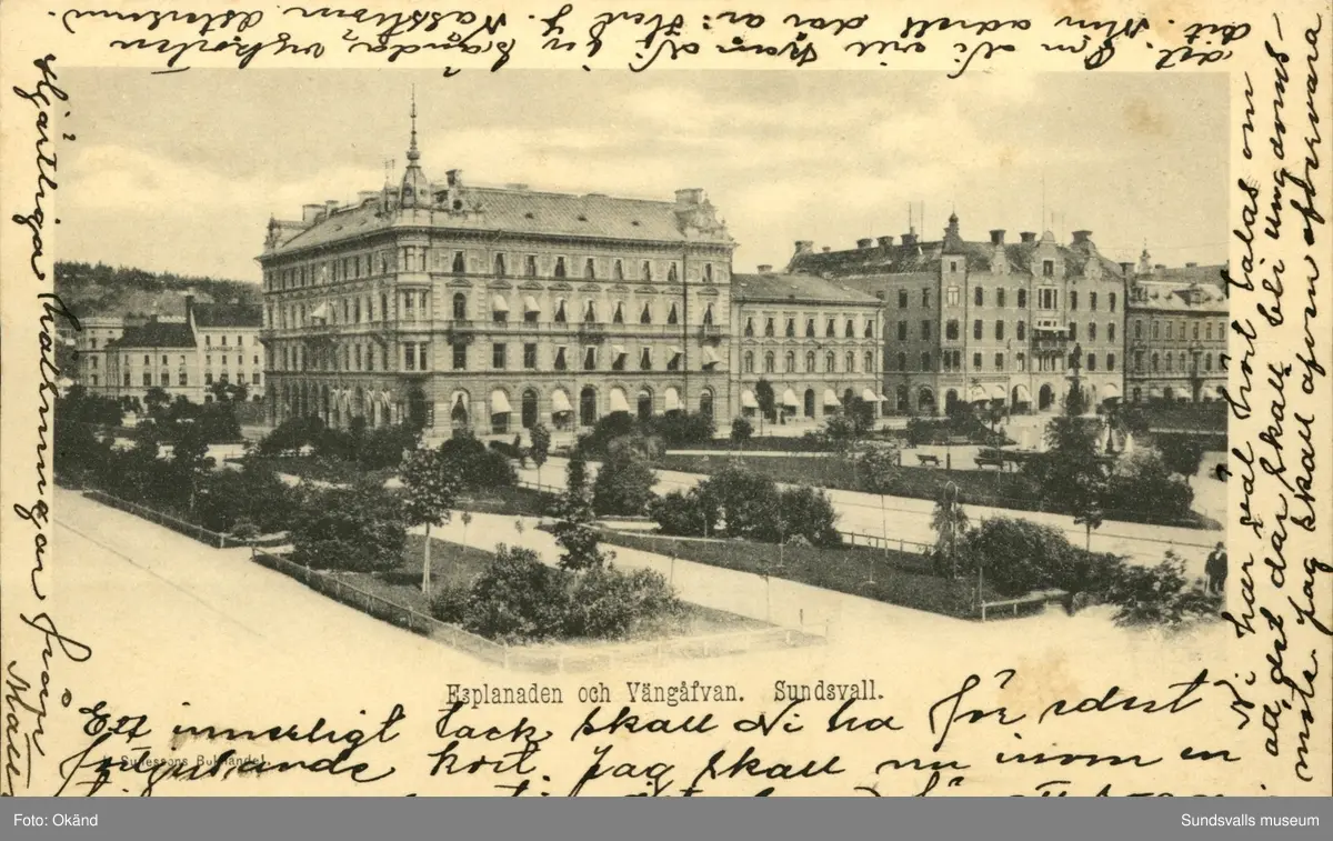 Vykort över Esplanaden och Vängåvan i Sundsvall.