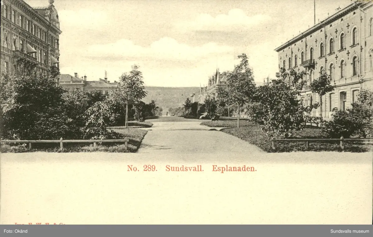Titel: Vykort med motiv av Esplanaden i Sundsvall.