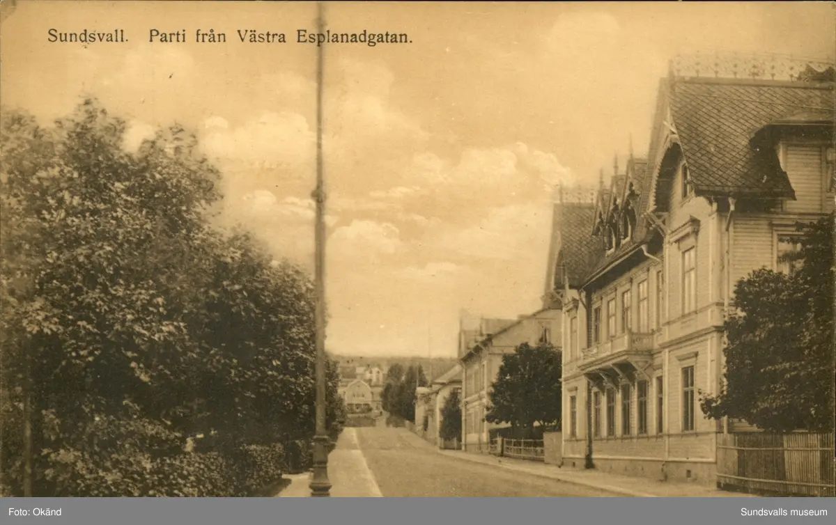 Vykort med motiv över den västra Esplanadgatan i Sundsvall.