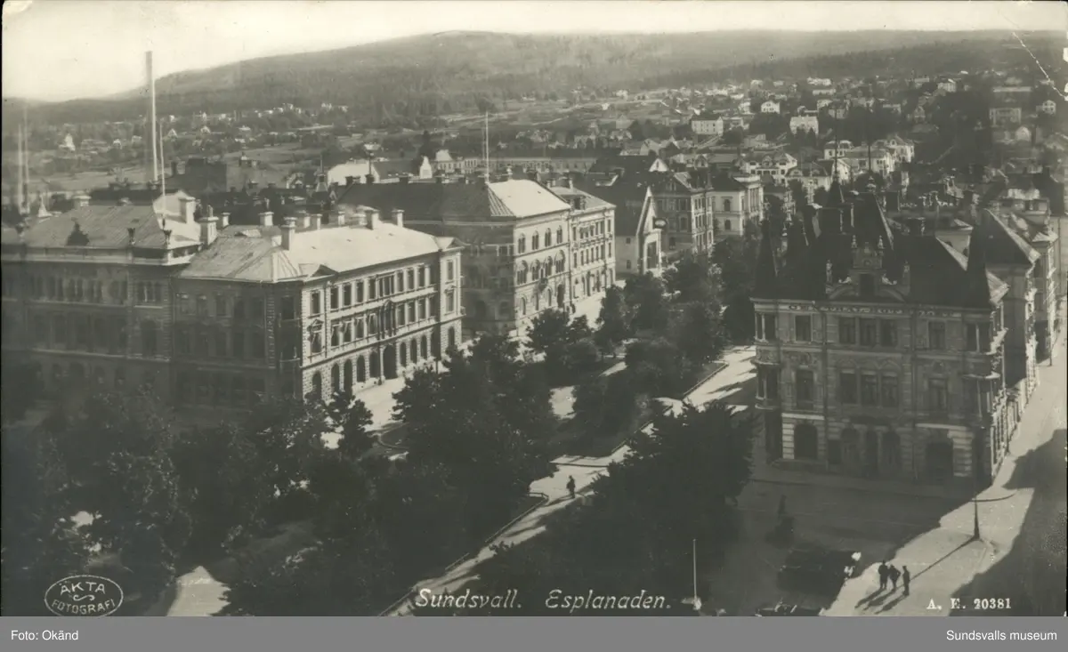 Titel: Vykort med motiv över Esplanaden i Sundsvall.