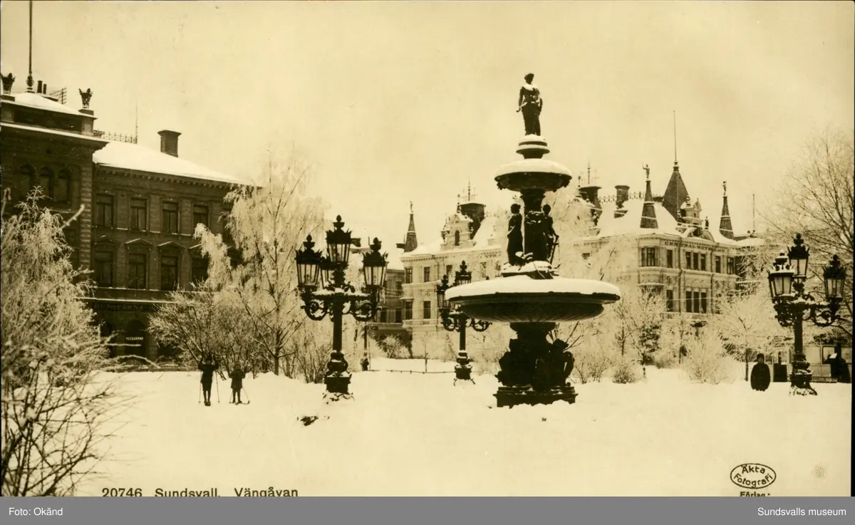 Titel: Vykort med vintermotiv över Vängåvan i Sundsvall.