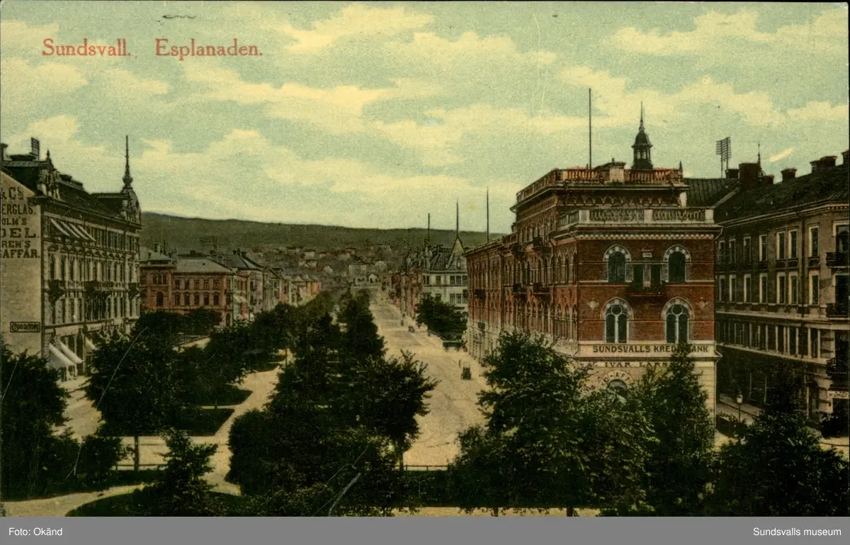 Vykort med motiv av Esplanaden i Sundsvall.