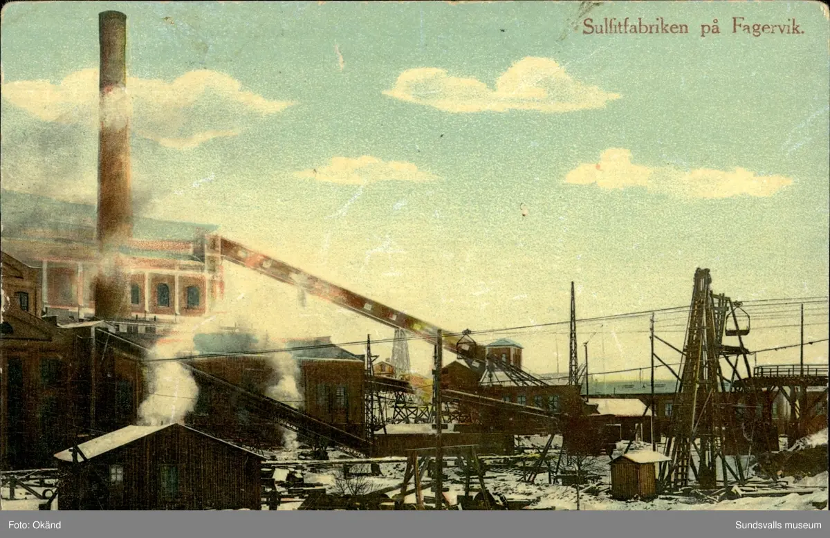 Vykort med motiv över Sulfitfabriken på Fagervik i Timrå.