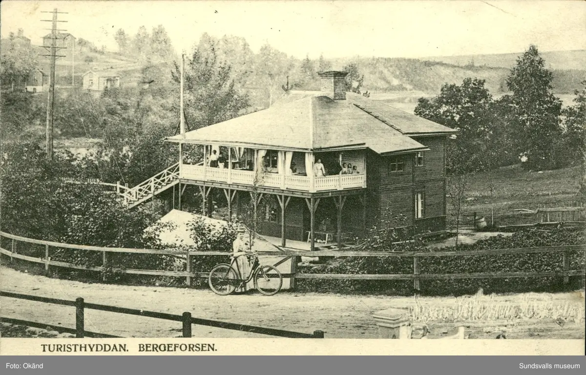 Vykort med motiv över Turisthyddan i Bergeforsen.