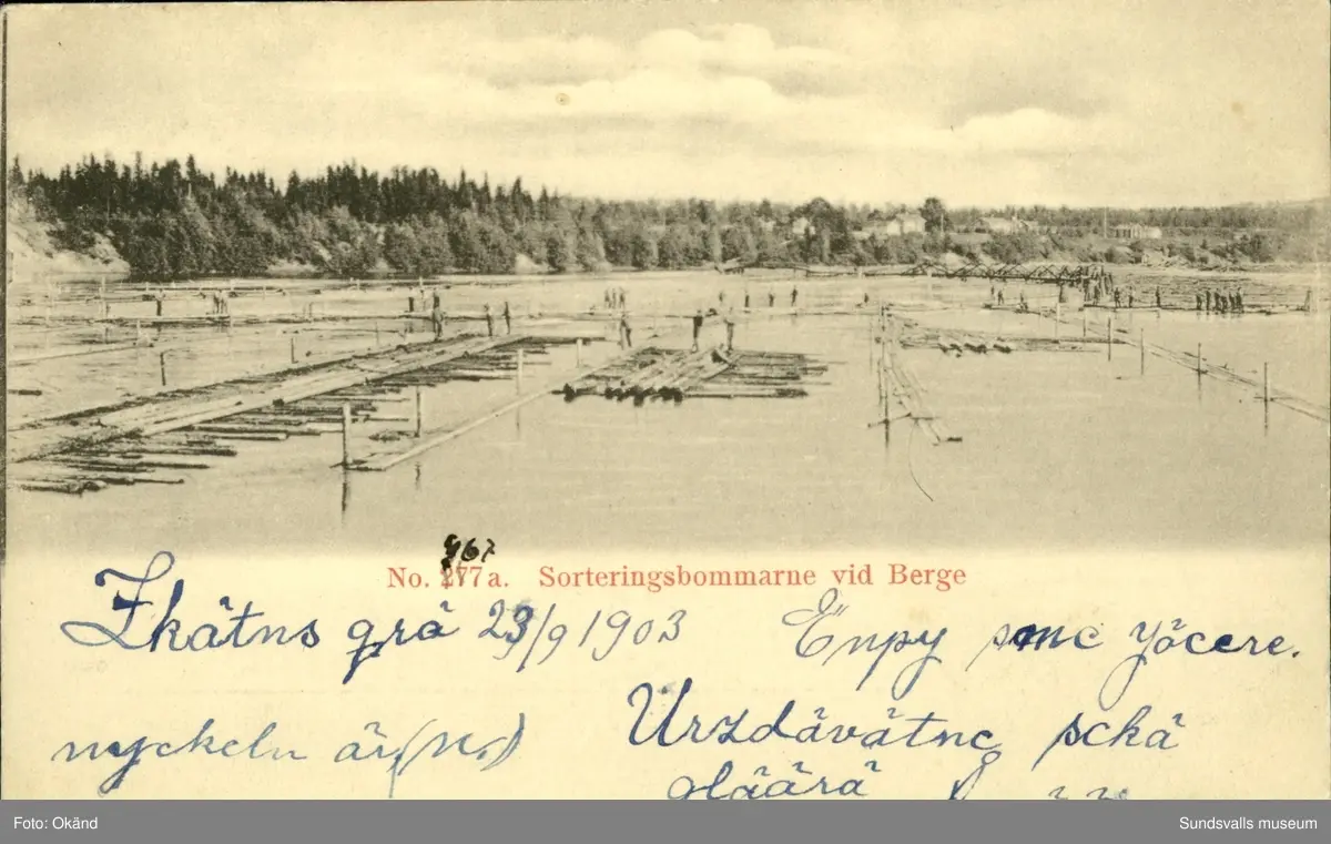 Vykort med motiv över sorteringsbommarna vid Berge.