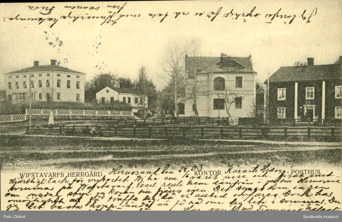 Vykort med motiv över Vivstavarvs herrgård och omkringliggande byggnader.