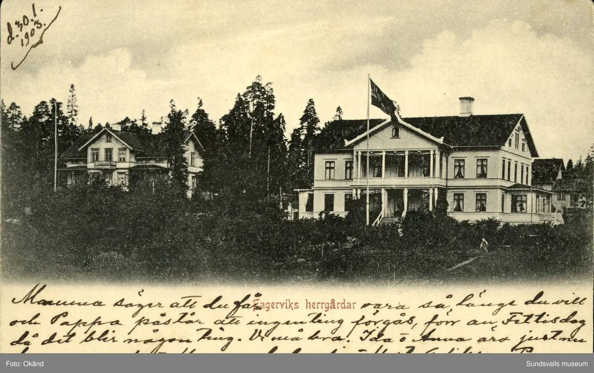 Vykort med motiv över Fagerviks herrgård i Timrå.