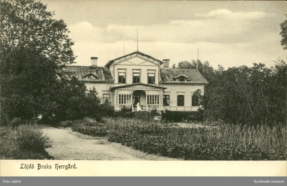 Vykort med motiv över Lögdö bruks herrgård i Timrå.