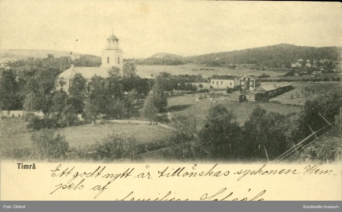 Vykort med motiv över kyrkan i Timrå.