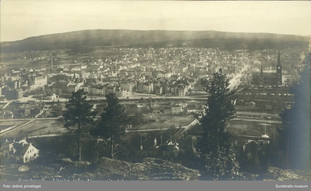 Vykort med motiv över Sundsvall från Norra Stadsberget.