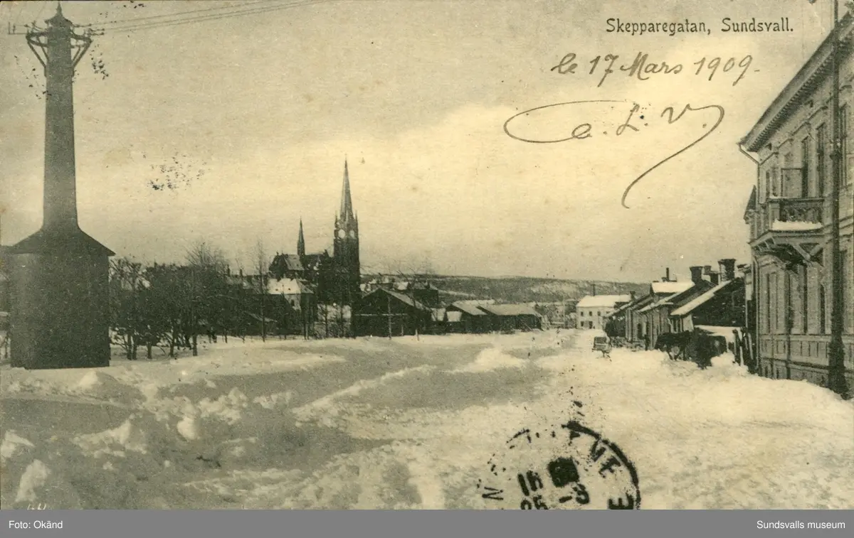 Vykort med motiv av Skepparegatan i Sundsvall.