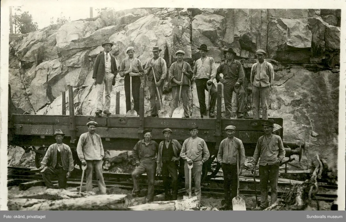 Vykort med motiv av rallare i Matfors enligt text på baksidan.