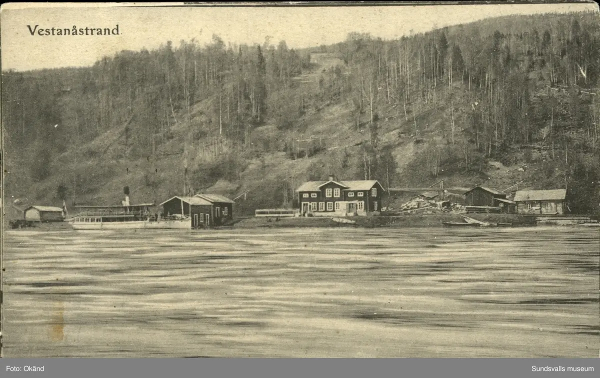 Vykort med motiv över Västanåstrand vid Indalsälven.