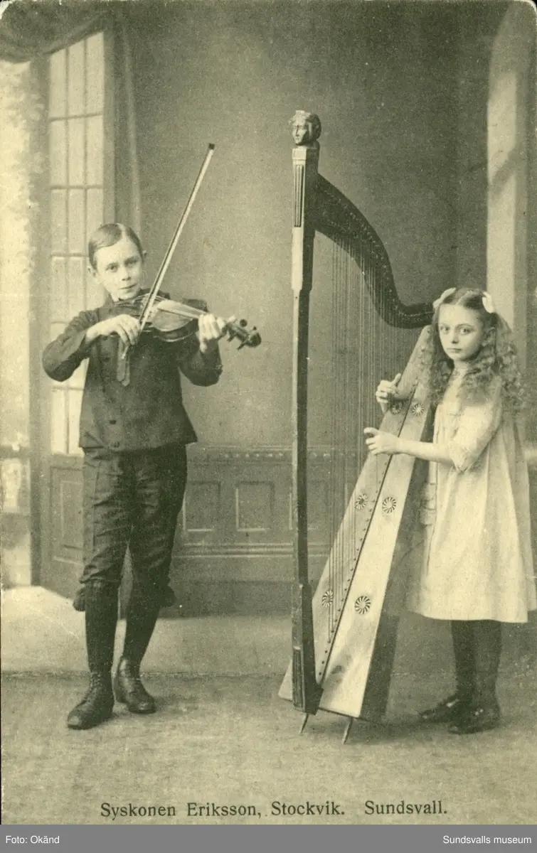 Vykort med motiv av syskonen Eriksson från Stockvik i Sundsvall.