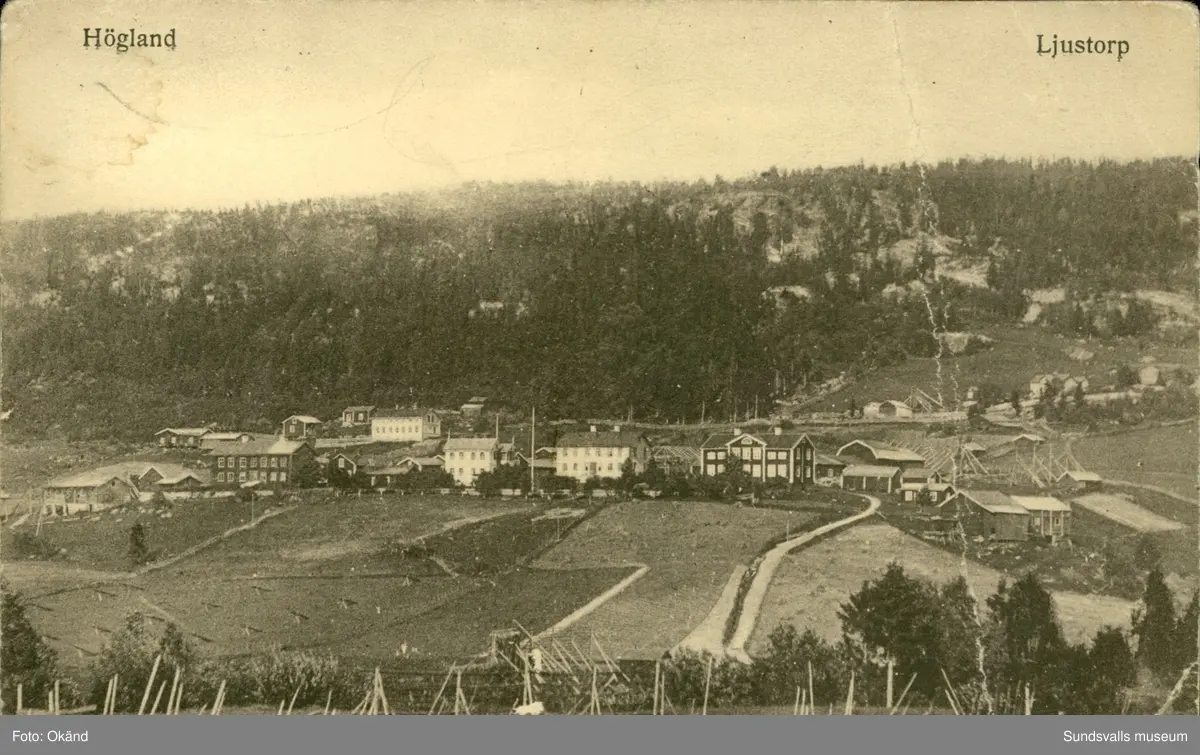 Vykort med motiv över Högland i Ljustorp.