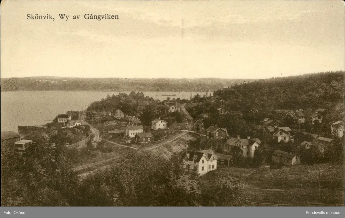 Vykort med motiv över Gångviken i Skönvik, Timrå.