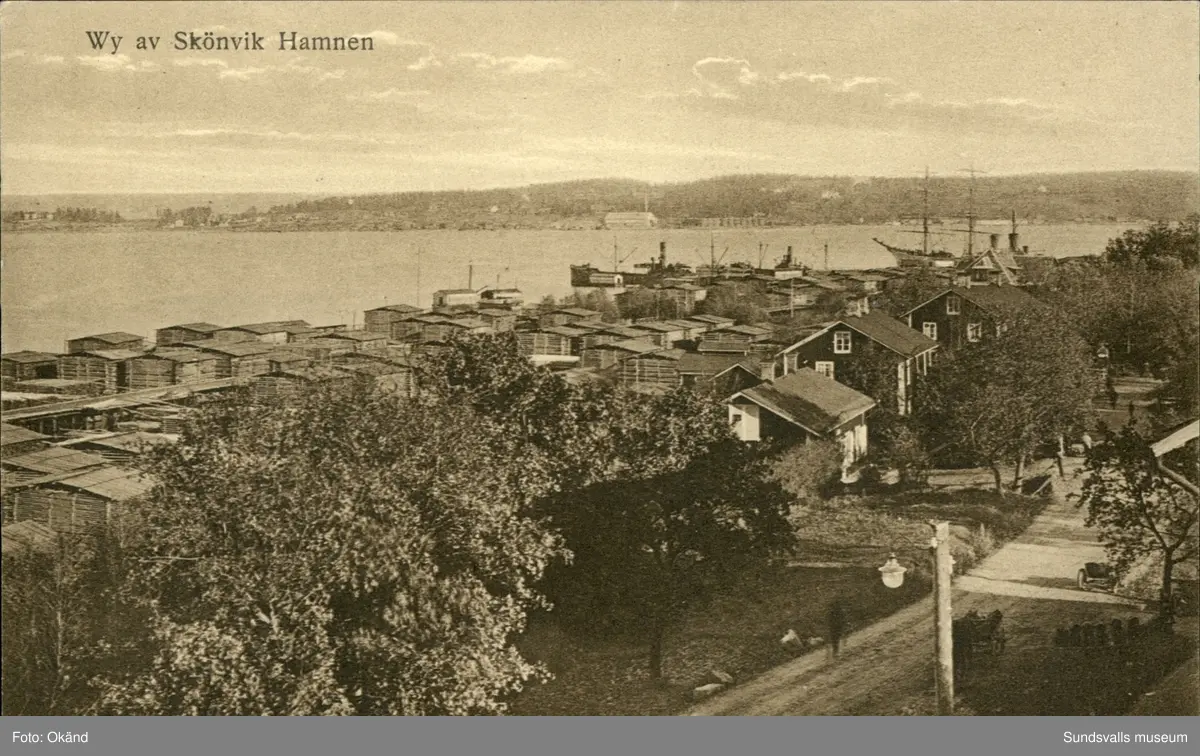Vykort med motiv över hamnen i Skönvik, Timrå.