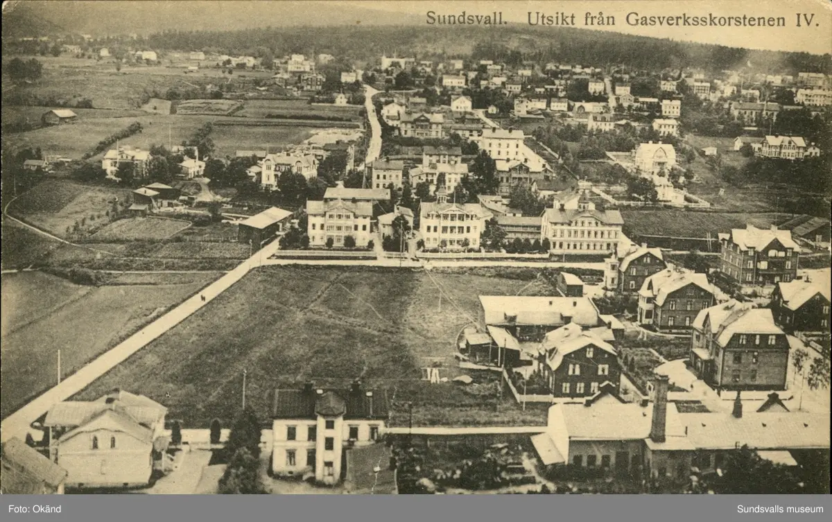Vykort med motiv över Sundsvall- Utsikt från Gasverksskorstenen IV.