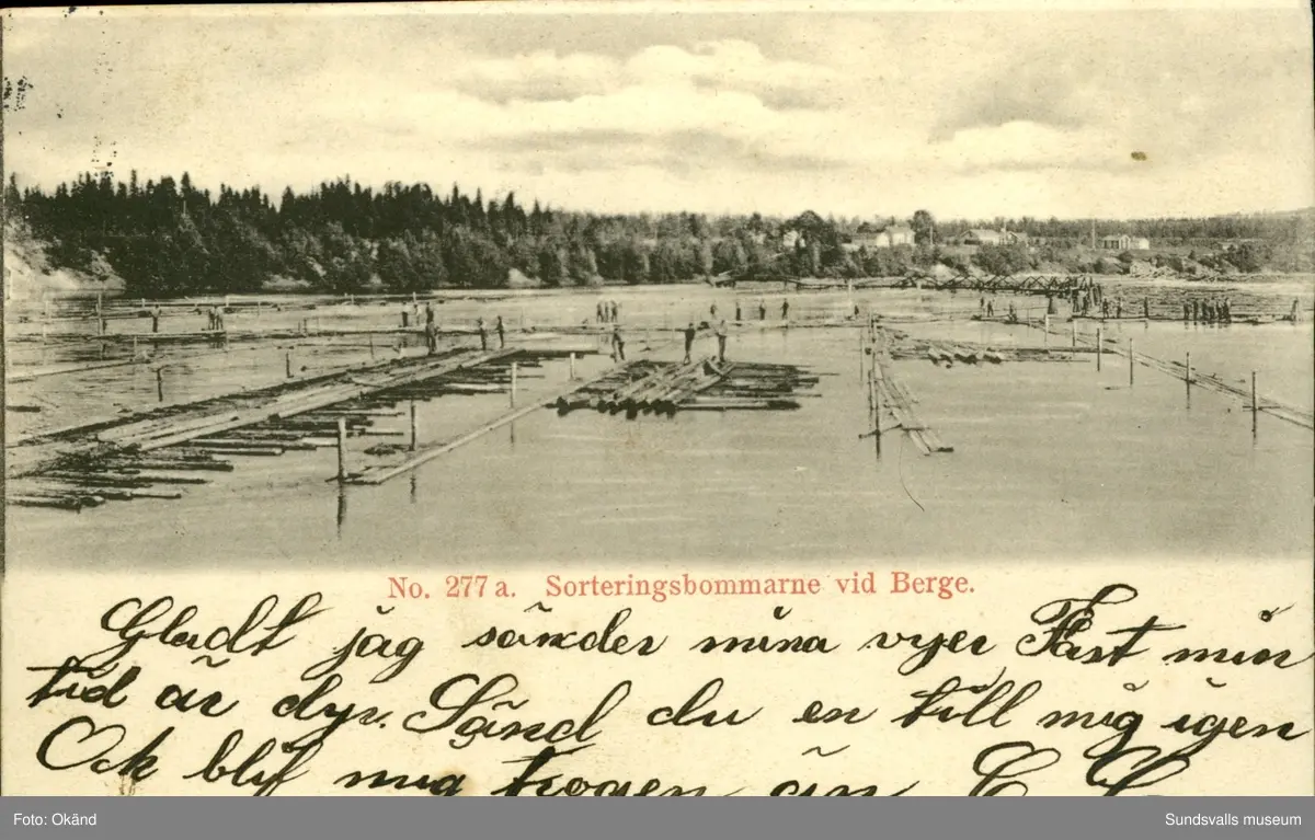 Vykort med motiv över sorteringsbommarna vid Berge.