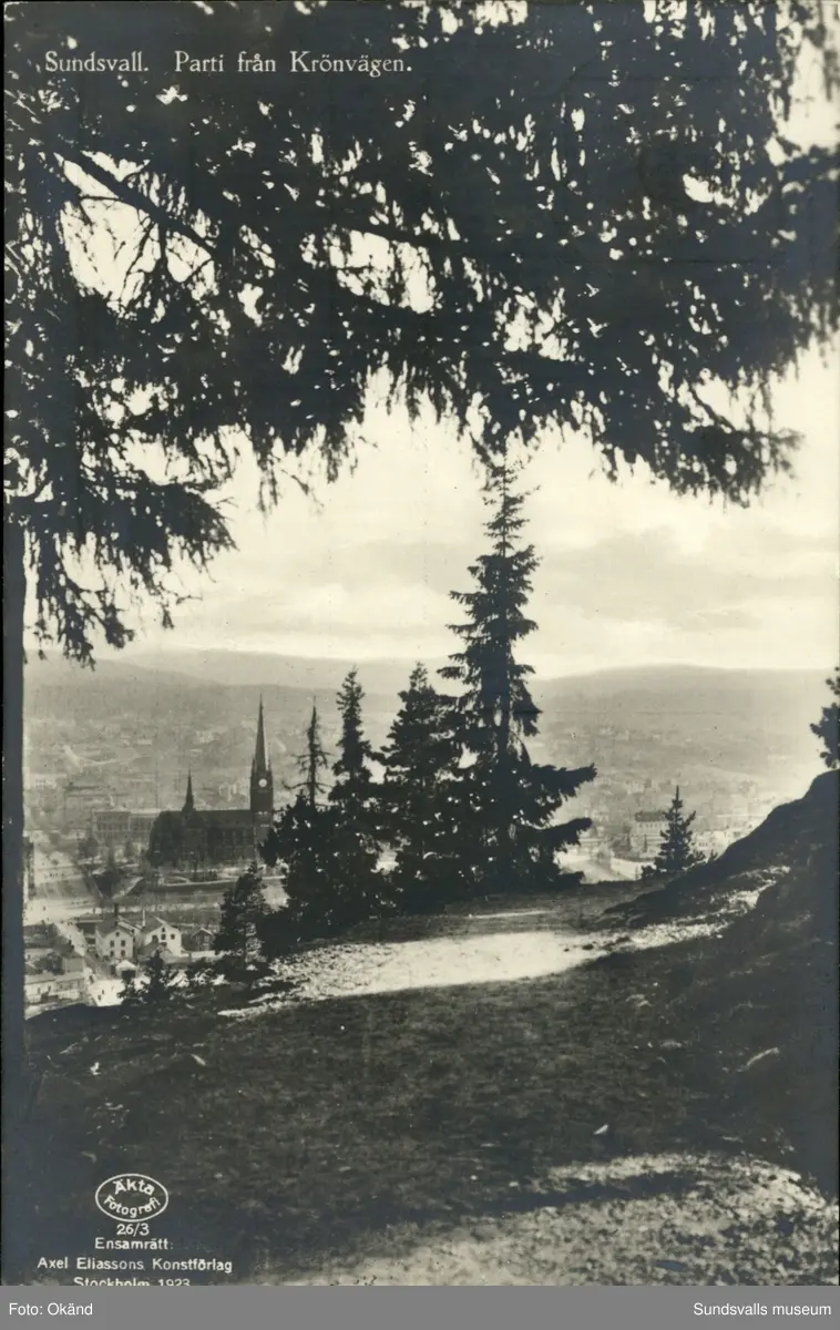 Vykort med motiv över Sundsvall från Krönvägen.