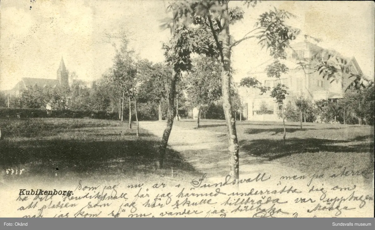Vykort med motiv över Kubikenborg i Sundsvall.