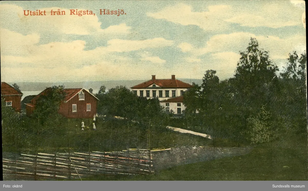 Vykort med motiv över utsikten från Rigsta, Hässjö.
