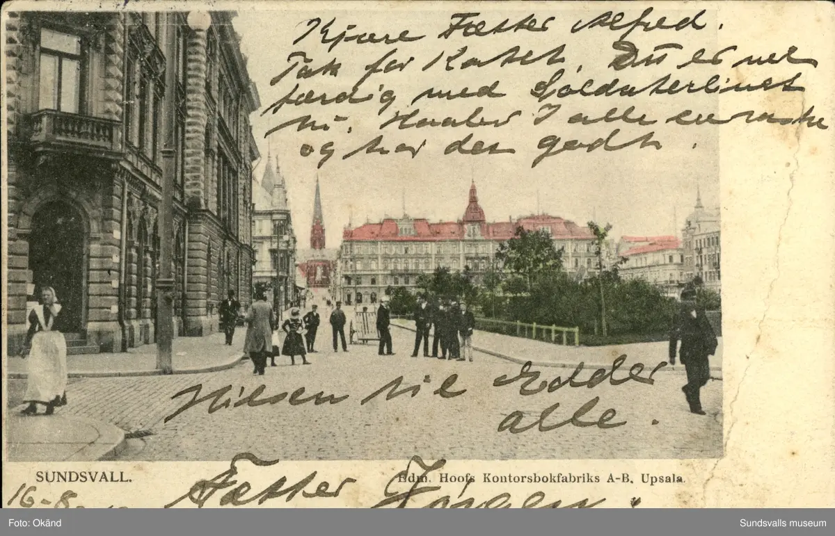 Vykort med motiv över Kyrkogatan i Sundsvall.