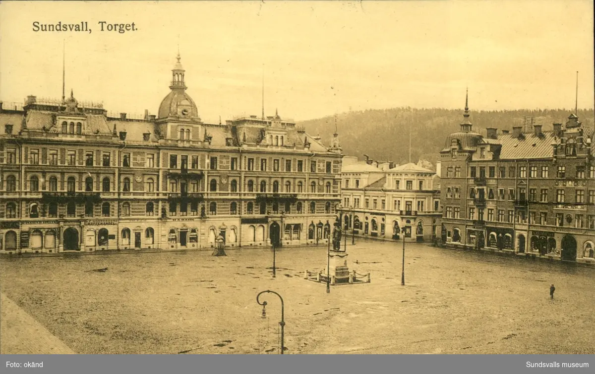 Vykort med motiv över Stora Torget i Sundsvall.