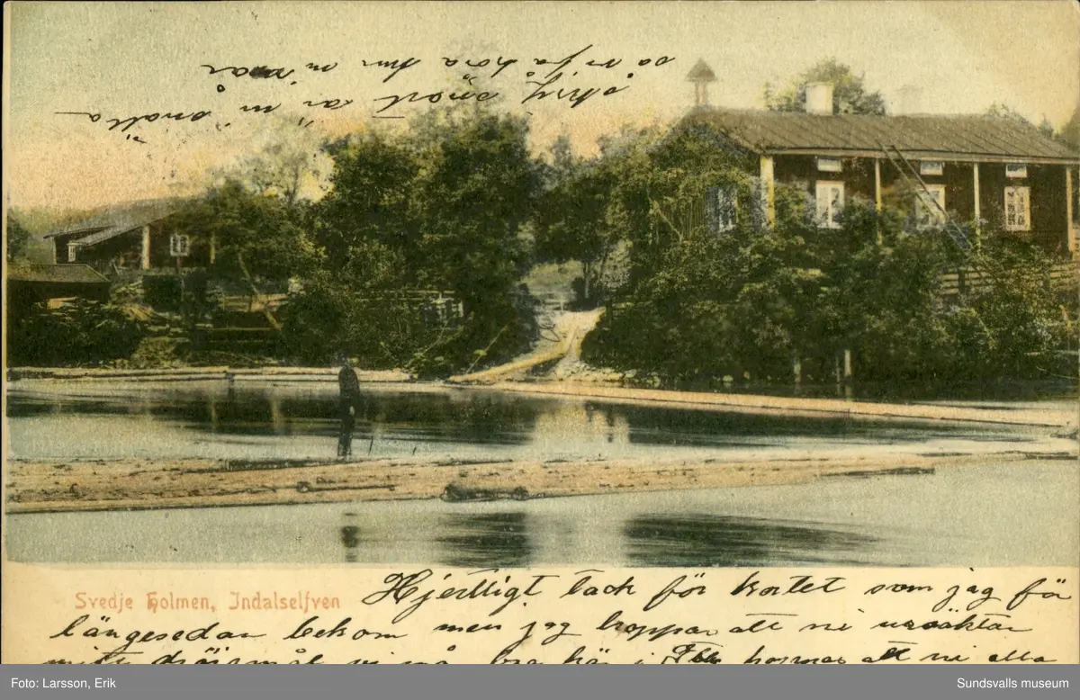 Vykort med motiv över Svedjeholmen i Indalsälven.