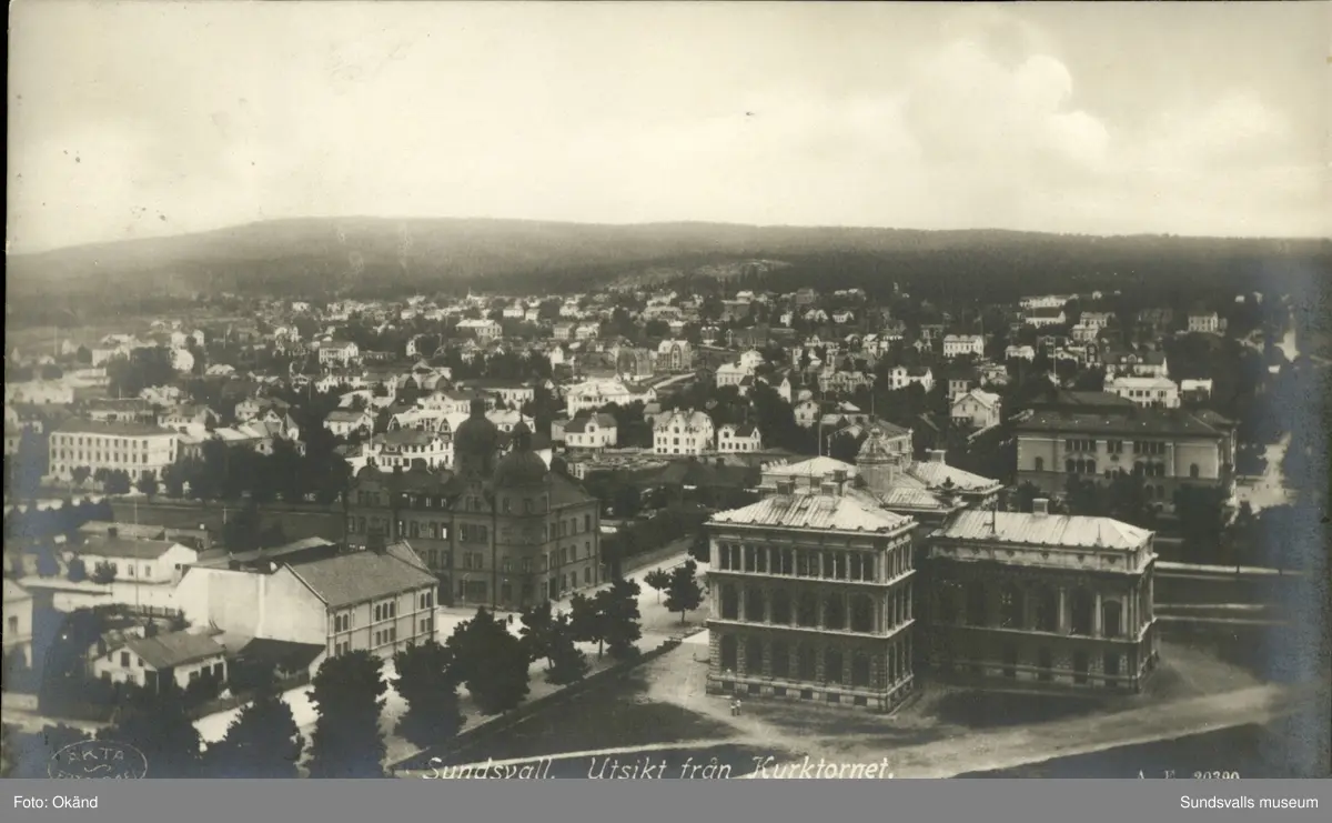 Vykort med motiv över Sundsvall från Gustav Adolfs kyrktorn.