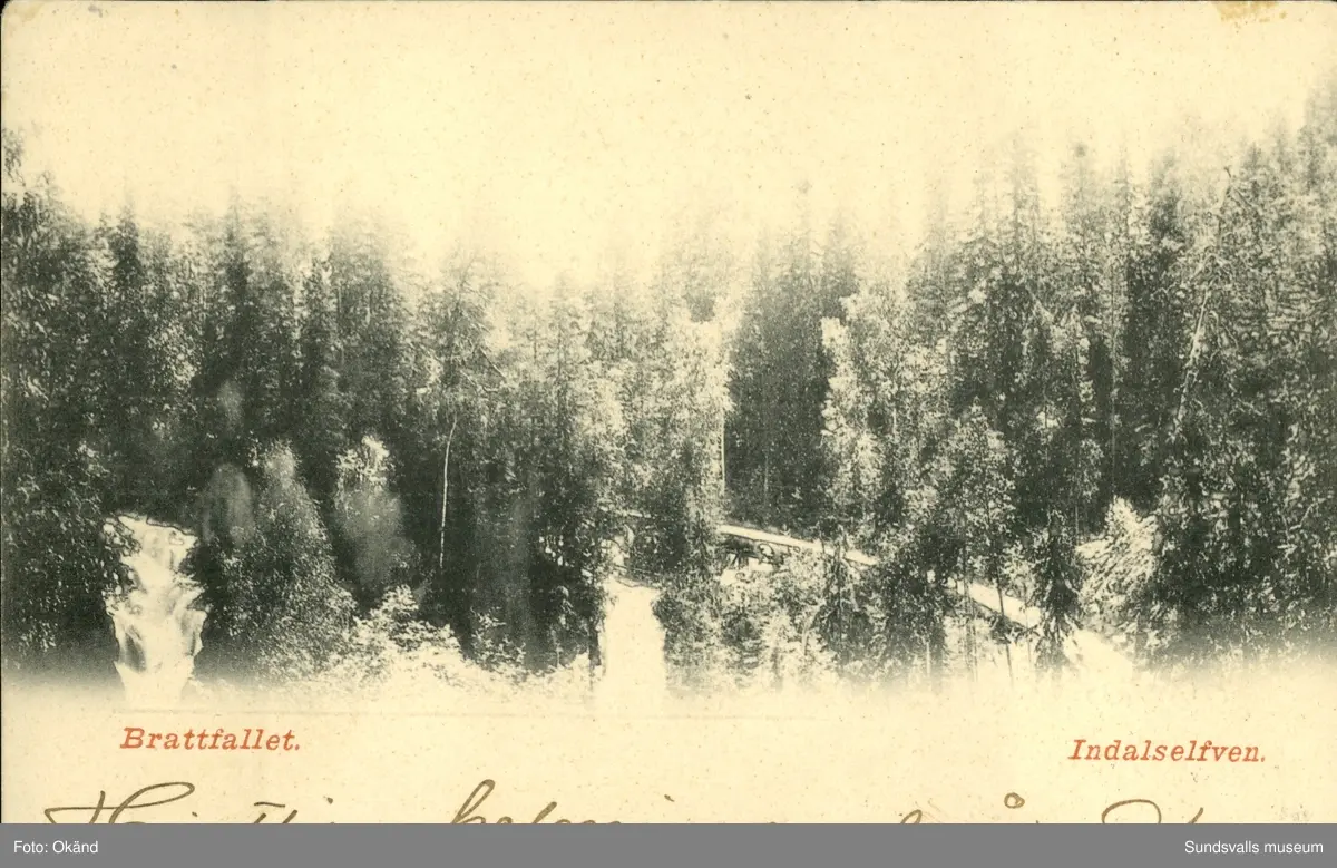 Vykort med motiv över Brattfallet vid Indalsälven.