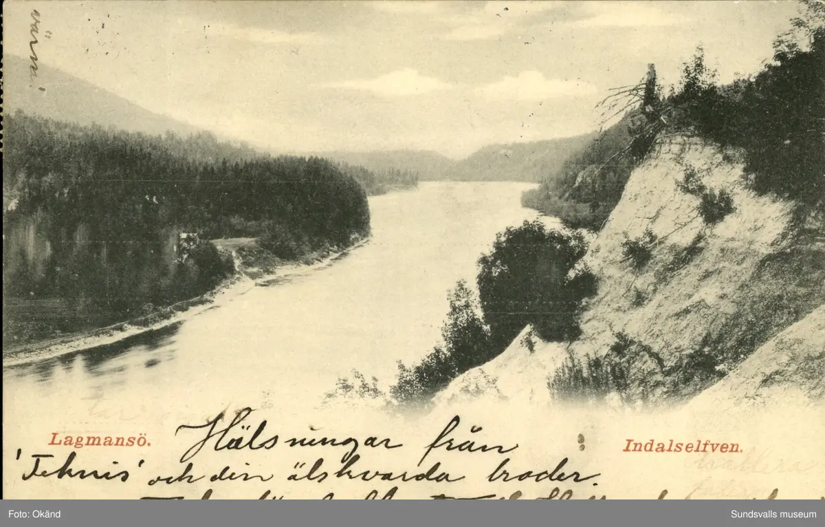 Vykort med motiv över Lagmansö vid Indalsälven.