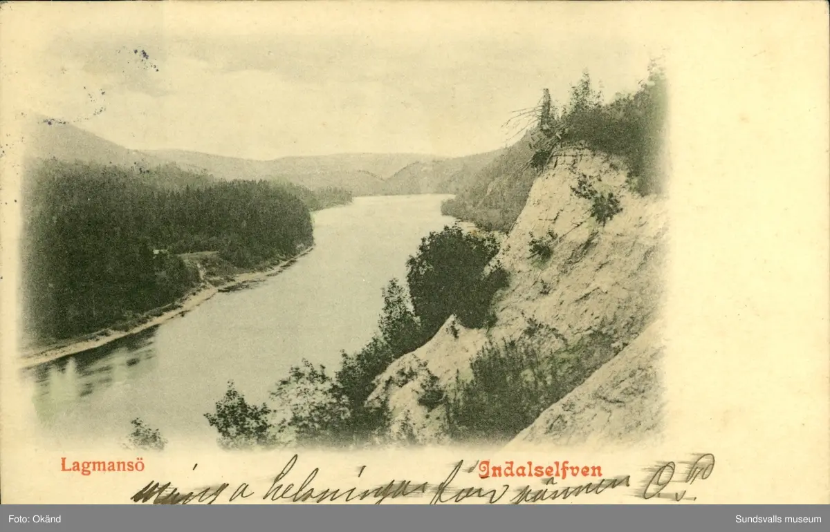 Vykort med motiv över Lagmansö vid Indalsälven.