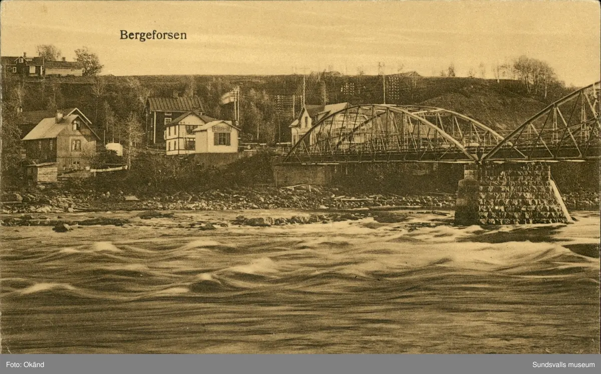 Titel: Vykort med motiv över bron vid Bergeforsen.