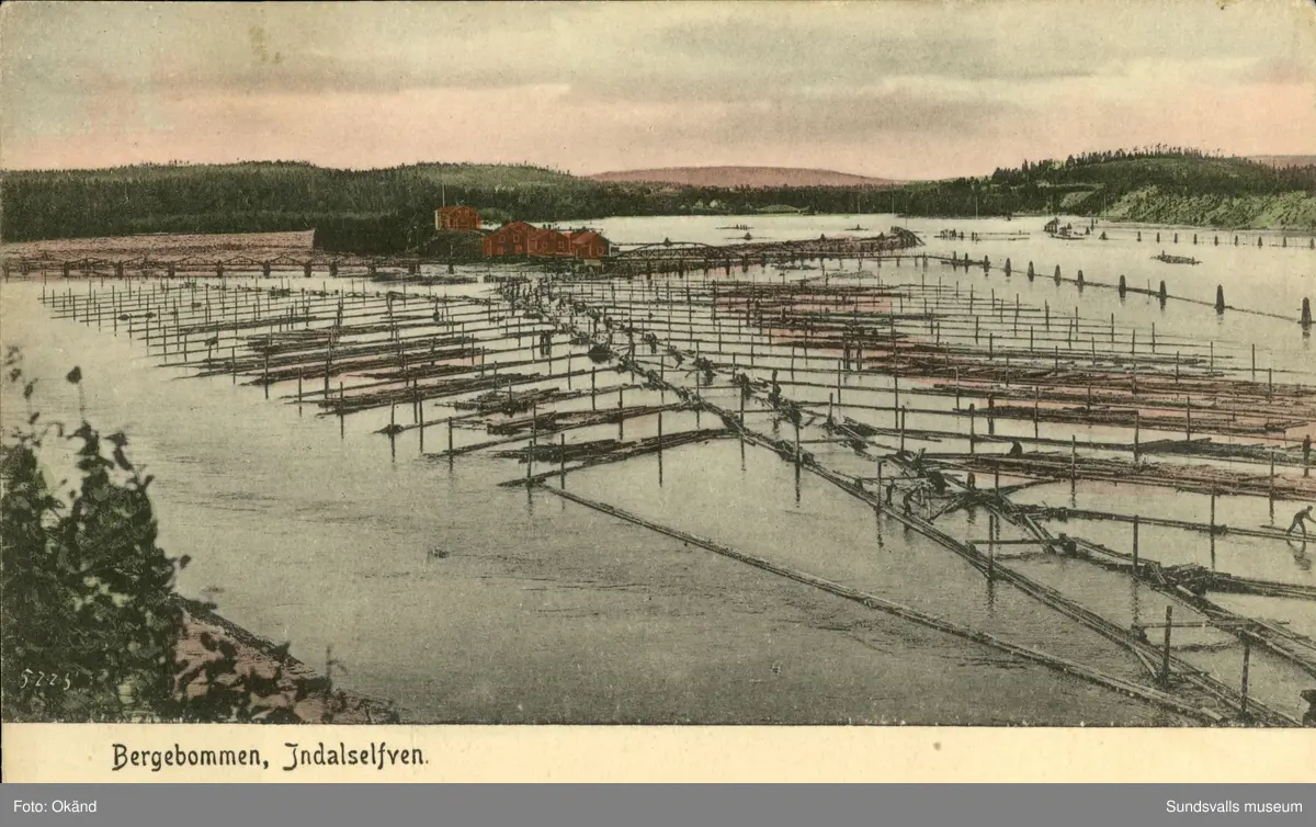Vykort med motiv över Bergebommen i Indalsälven.