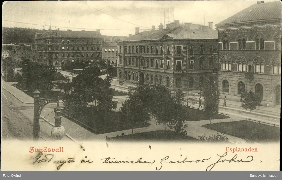 Titel: Vykort med motiv över Esplanaden i Sundsvall.
