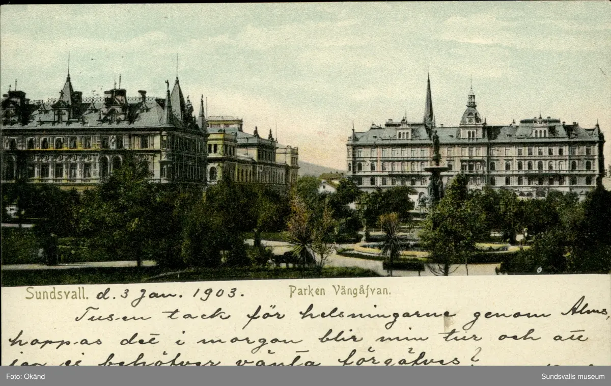 Vykort med motiv av Vängåvan i Sundsvall.