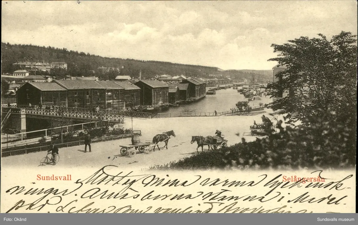 Vykort med motiv över Selångersån och Storbron i Sundsvall.