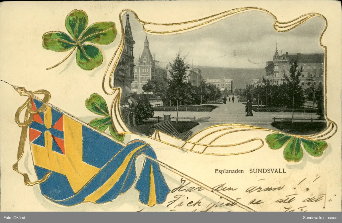 Vykort med ett inramat motiv över Esplanaden i Sundsvall.