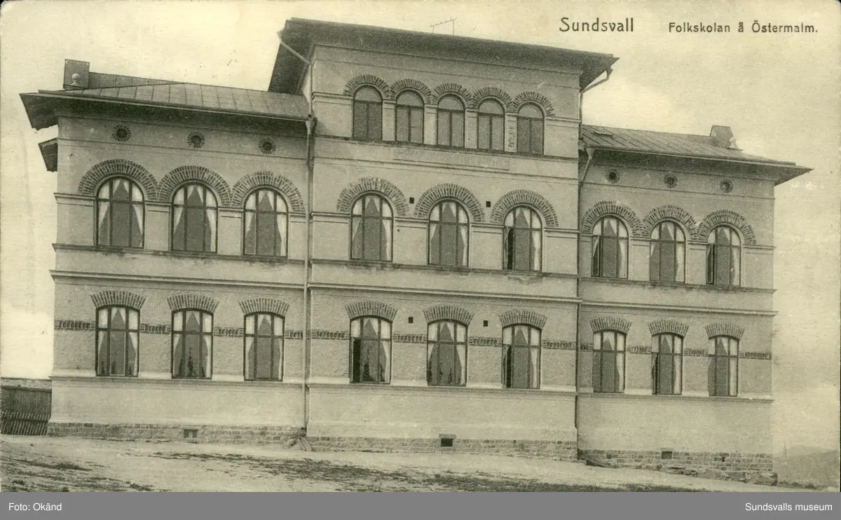 Vykort med motiv över Folkskolan i Sundsvall.