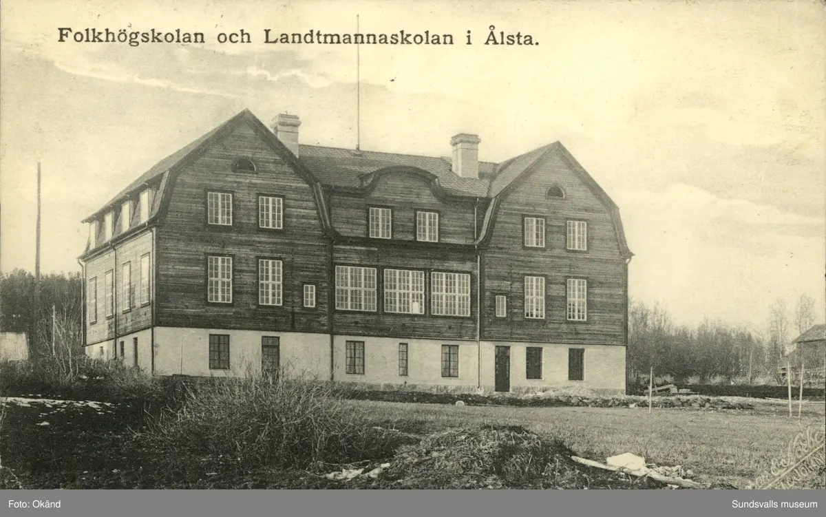 Vykort med motiv över folkhögskolan och lantmannaskolan i Fränsta.