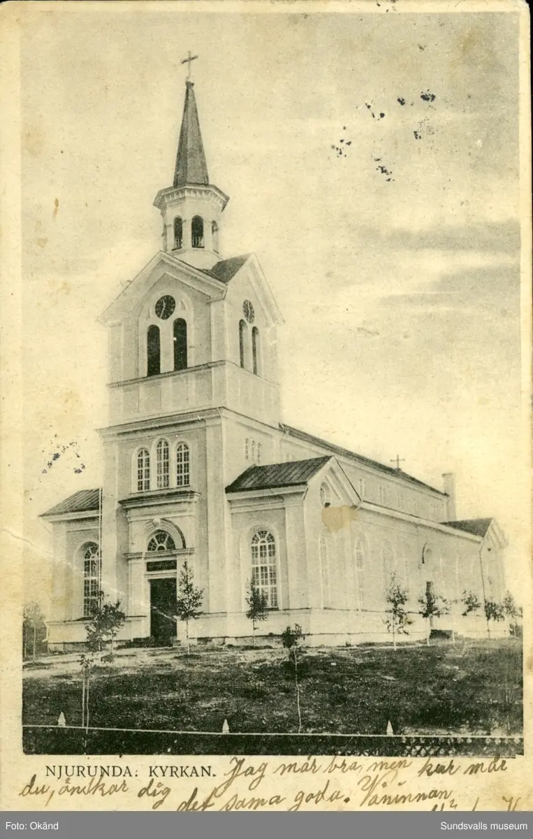 Vykort med motiv över kyrkan i Njurunda.