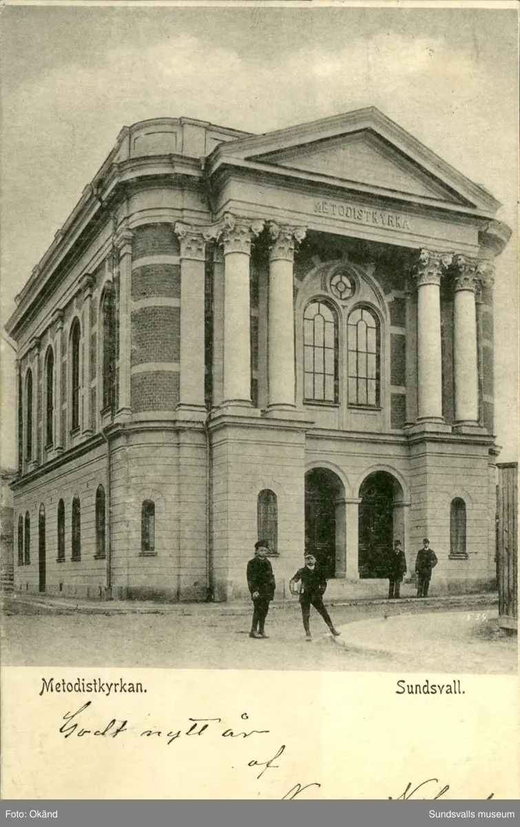 Vykort med motiv över Metodistkyrkan i Sundsvall.
