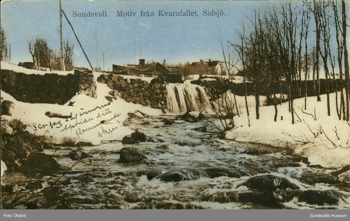 Vykort med motiv av Kvarnfallet i Sidsjö.
