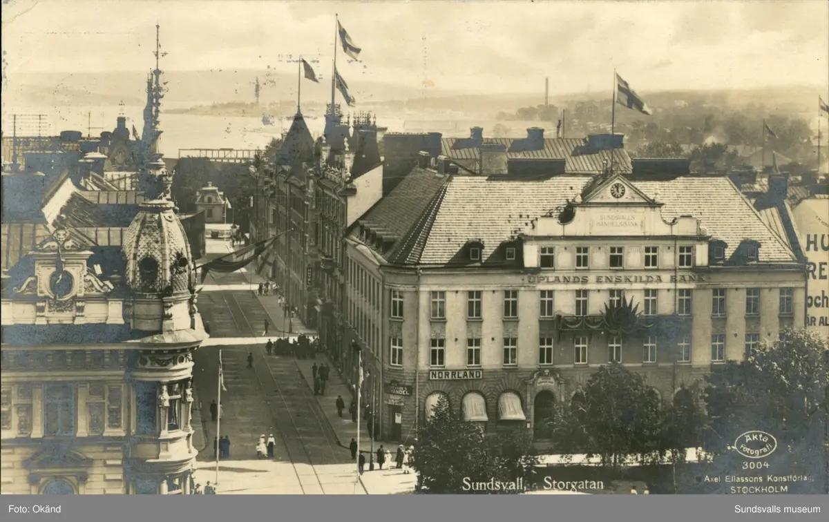 Titel: Vykort med motiv över parti av Storgatan i Sundsvall.
