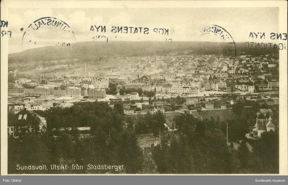 Vykort med motiv över Sundsvall sett från Norra berget.