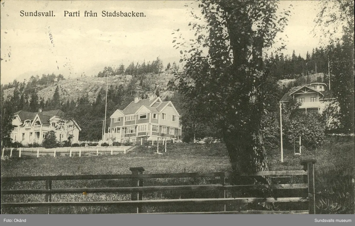 Vykort med motiv över parti från Stadsbacken i Sundsvall.